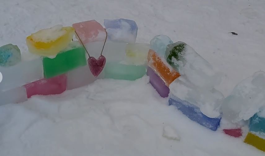 Jäädytä sinäkin erilaisissa astioissa rakennustarvikkeita Kivenlahden jääteokseen.