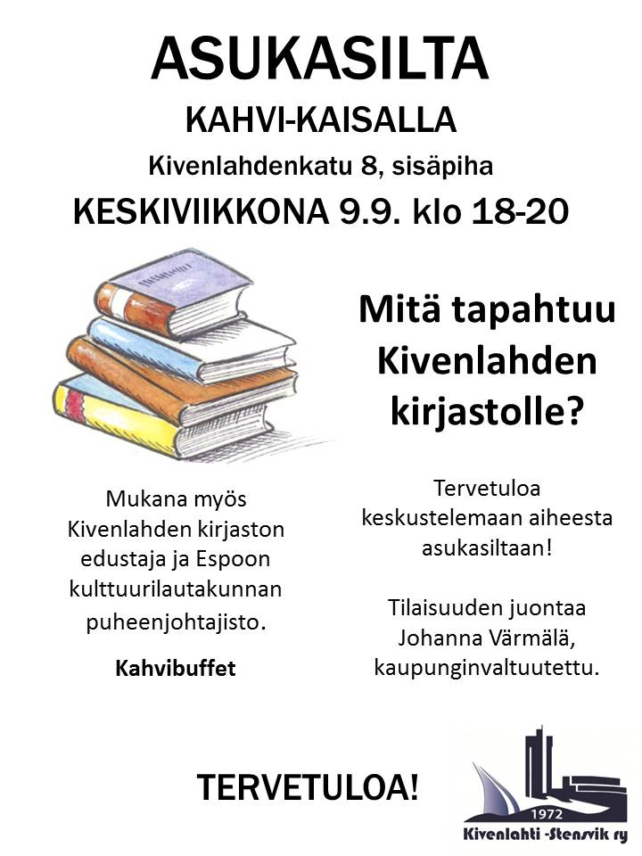 Asukasilta 9.9.2015 Jaa tämä: Click to share on X(Avautuu uudessa ikkunassa) X Jaa Facebookissa(Avautuu uudessa ikkunassa) Facebook Tykkää Lataa...
