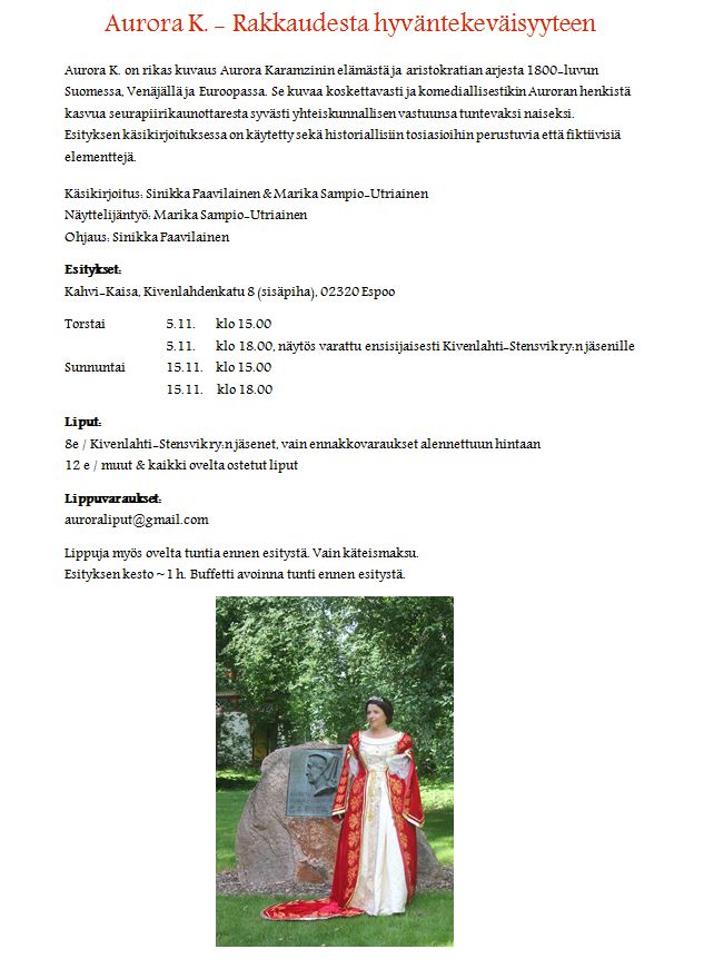 Aurora K. näytökset syksy 2015 Jaa tämä: Click to share on X(Avautuu uudessa ikkunassa) X Jaa Facebookissa(Avautuu uudessa ikkunassa) Facebook Tykkää Lataa...