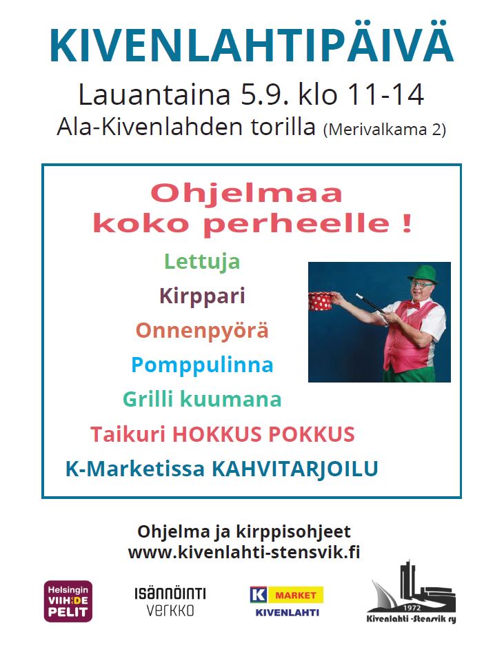 Tapahtuman järjestää talkoovoimin: Kivenlahti-Stensvik ry.